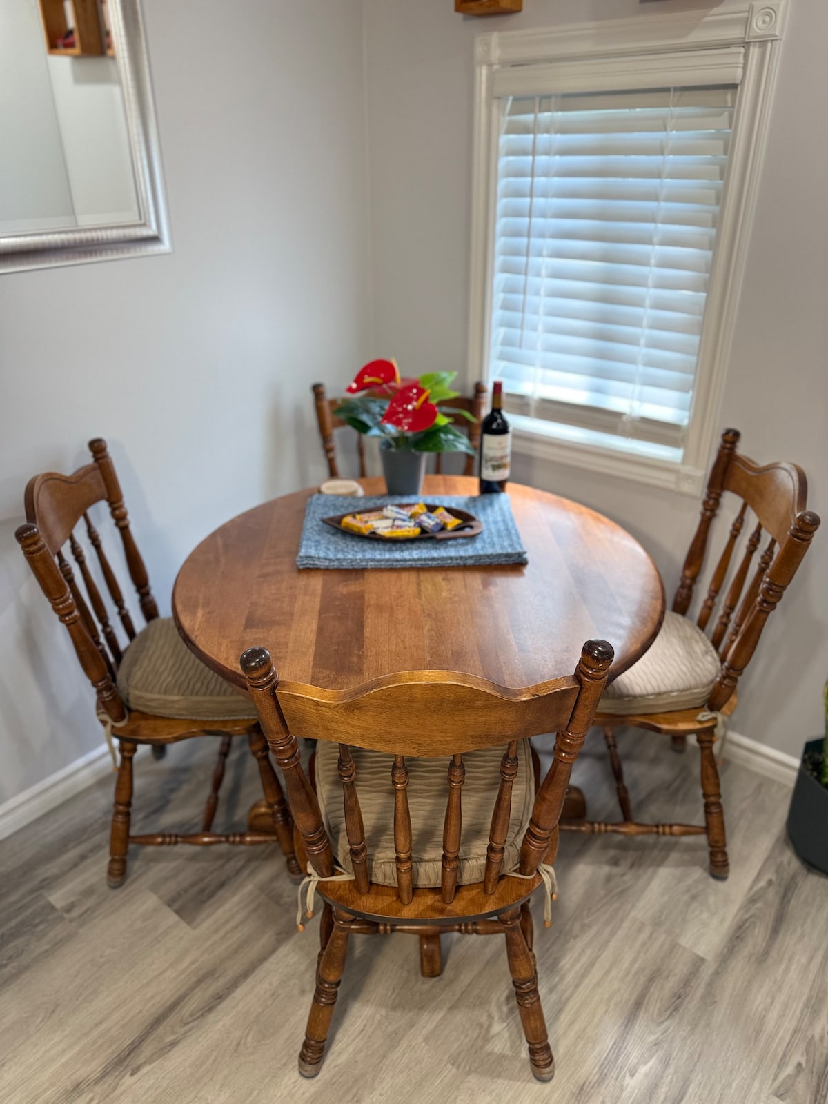 Bo nära centrala Windsor i vårt hem med 3 sovrum, med ett extra 4:e sovrum/vardagsrum i den färdiga källaren. Vi har 5 sängar (2 drottningar, 3 tvillingar och en bäddsoffa i källaren), plus en TV i varje sovrum. Det är husdjursvänligt med en stor bakgård. Perfekt för familjer – vi har en barnstol och lekhage. Barn kan ha sitt eget utrymme i källaren med en stor TV. Njut av en bekväm och bekväm vistelse!