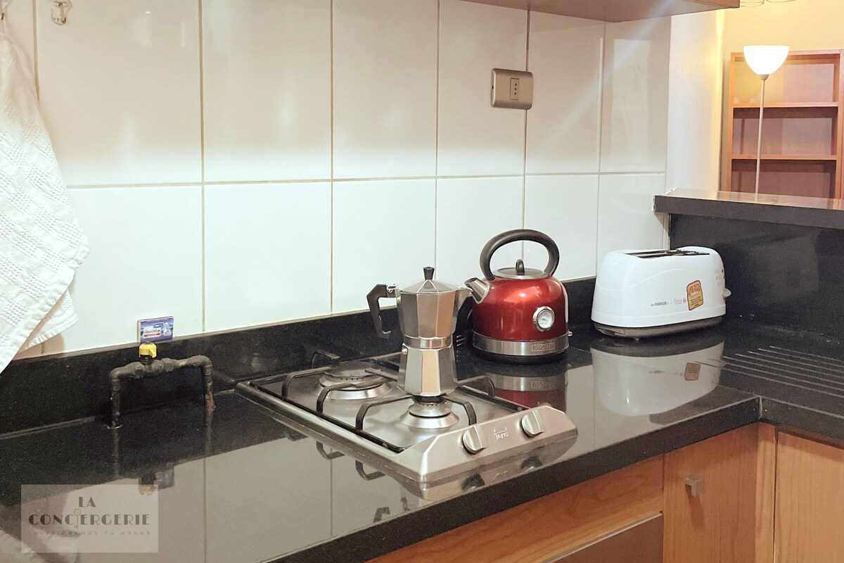 vi välkomnar dig till en modern lägenhet, perfekt för tre personer, med allt du behöver för en bekväm, säker och väl belägen vistelse i Providencia. Perfekt för familjer, grupper av vänner, turister eller personer som behöver vara nära hälsocenter Premium-plats - I hjärtat av Providencia - Steg till kliniker, apotek, stormarknader och restauranger - med exelente anslutning, närliggande tunnelbanestation kollektivtrafik vid utgången