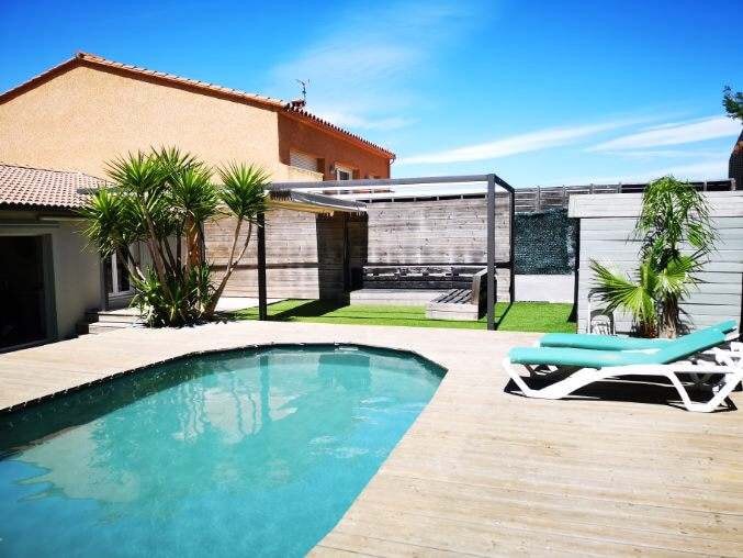 Ny och välutrustad 4★ villa på 100 m² i Saint-André, en lugn by söder om Perpignan, mellan havet och Albera Massif. Idealiskt beläget för att upptäcka vår region, 10 min från stränderna, 15 min från Collioure och 30 min från Spanien. Kapacitet 6 personer, 3 bekväma sovrum, badrum och duschrum, luftkonditionering, snabbt wifi, privat parkering. Terrass utrustad för måltider och avkoppling och säker privat pool. Butiker och aktiviteter i närheten, lugnt bostadsområde.