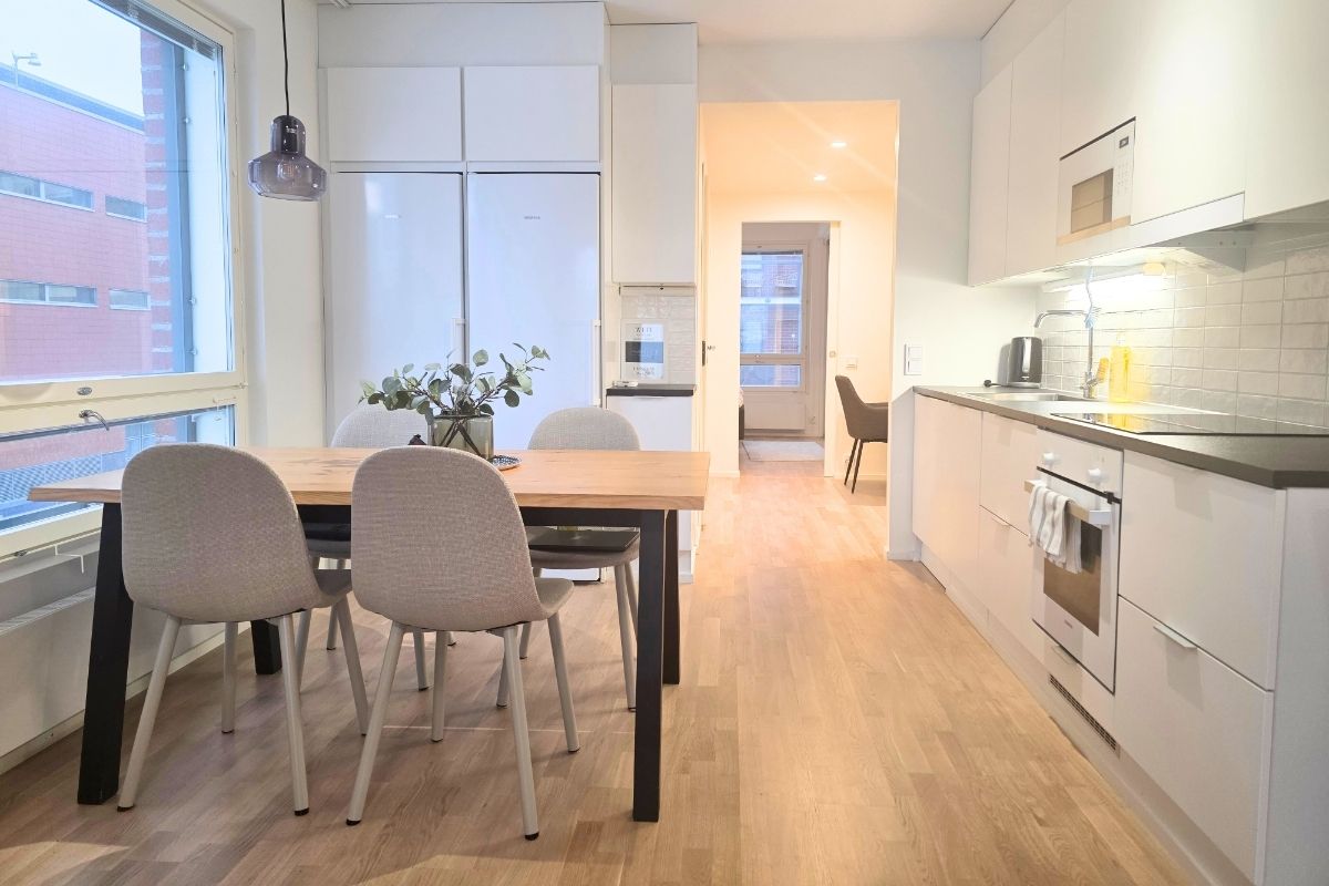 Ljus och ren tvåa med bastu vid stranden av Jyväsjärvi. Huset byggdes 2019 i ett bostadsområde längs Rantaraiti. Från den stora glasade balkongen öppnar sig en obehindrad sjöutsikt mot centrum. Badstrand. Privat parkeringsplats bredvid nedre dörren. I området finns vackra och mångsidiga joggingleder och en frisbeegolfbana. Lägenheten är fullt utrustad (omfattande porslin, hushållsapparater, sovplatser för fyra personer, 65" smart-TV med streamingtjänster, luftvärmepump, hängstol etc.).