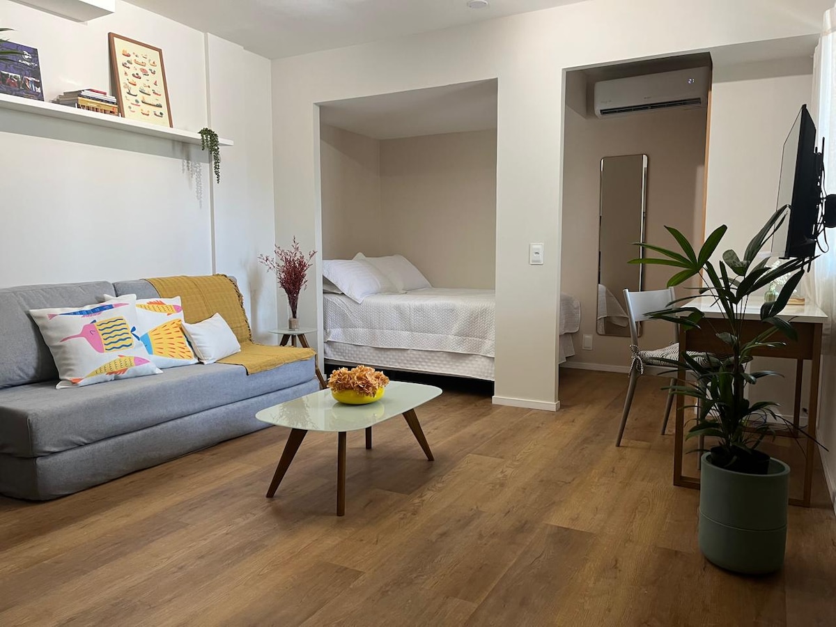 Detta integrerade utrymme, som mäter 25 m², är mysigt och lugnt, med en inredning som betonar stil och lätthet. Beläget 5 minuters promenad från en vacker strand (ingen havsutsikt), har det ett fullt utrustat kök, sängkläder och handdukar, och olika apparater. Beläget i centrum av Vilas do Atlântico, nära Arena Vilas och allmän handel. Vi har fri parkering. Den rymmer upp till 4 gäster, eftersom vi har en dubbelsäng och en soffa som omvandlas till två enkla madrasser.