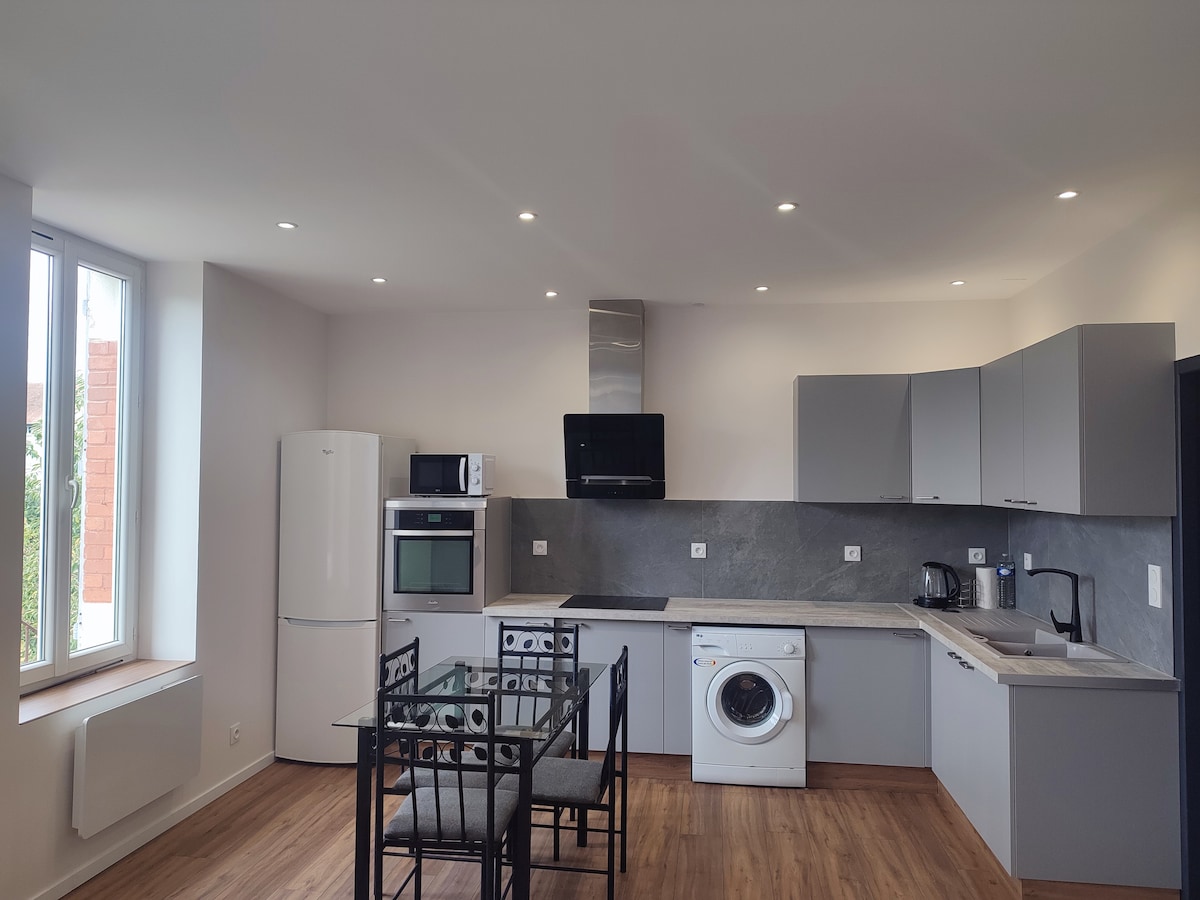 Ny studio med diskmaskin, induktionshäll, mikrovågsugn, porslin, TV. 1 bädd för 2 personer bäddad vid ankomst, 1 bäddsoffa typ BZ 140 tillhandahålls gratis. Offentliga parkeringsplatser i närheten, Intermarché, Aldi, bensinstation, möjlighet att lasta av dina väskor framför boendet. Helt autonom ankomst utan tidsbegränsning. Möjlighet att boka fram till kl. 21 samma kväll. Barnsäng tillgänglig.