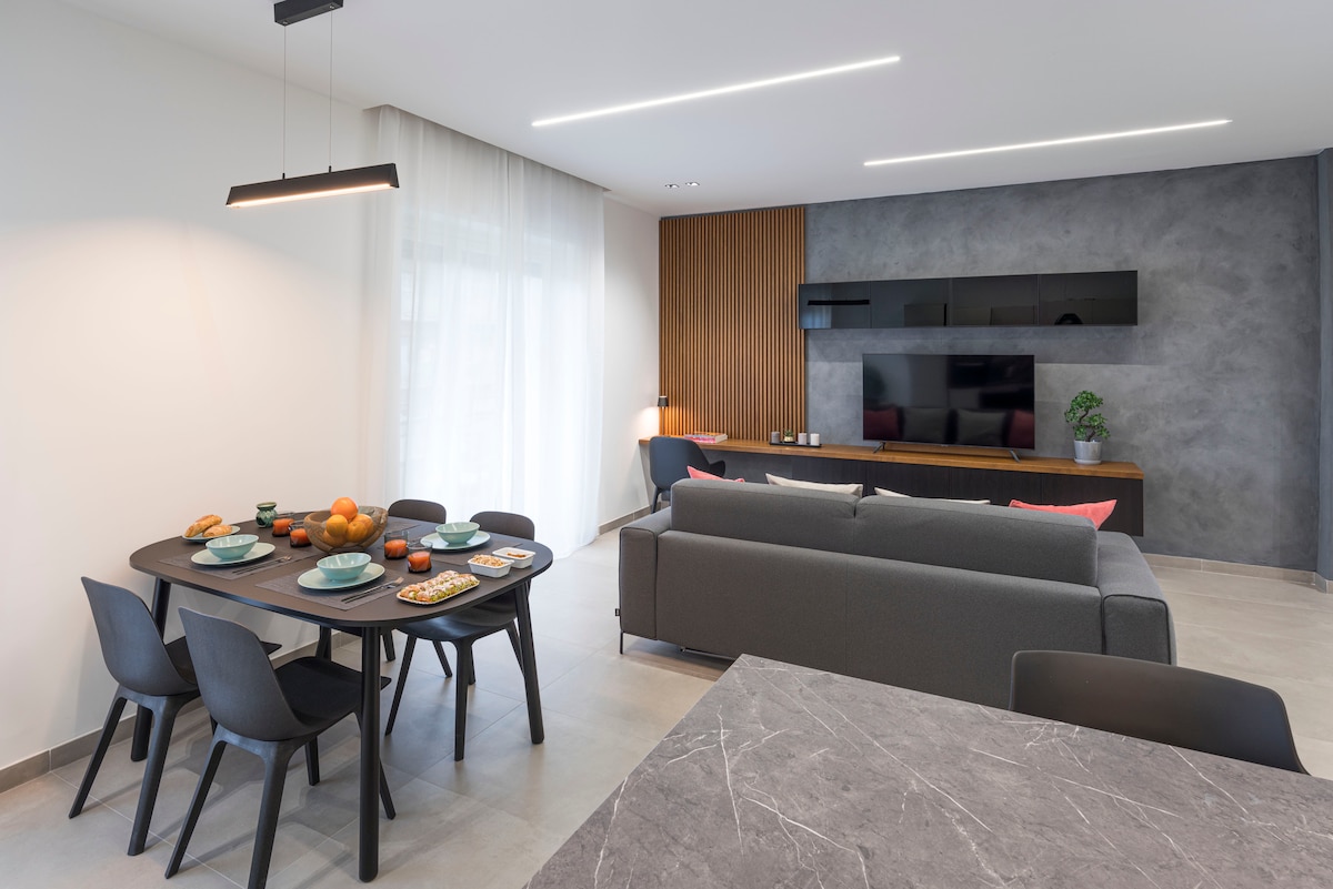 Lägenheten, som ligger i Taorminas historiska centrum, är nybyggt och har ett sovrum med dubbelsäng, badrum med dusch, kök, vardagsrum (med bäddsoffa) och terrass. Det är utrustat med luftkonditionering, uppvärmning, 50" led Smart TV med satellitmottagning, gratis 100 Mbit/s WiFi, kassaskåp och hårtork. Några steg bort ligger barer, restauranger, pizzerior, den urbana busshållplatsen, taxistationen och linbanan som förbinder staden med havet.