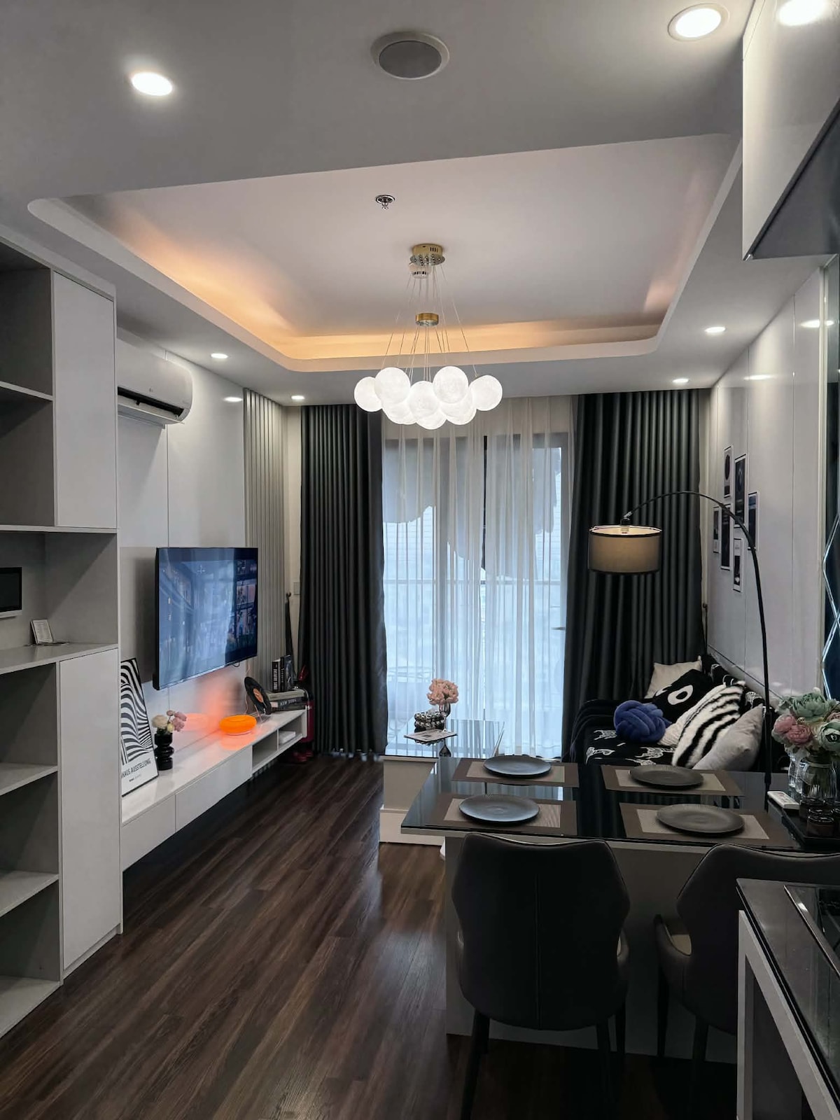 Fly till raffinerad komfort i denna eleganta lägenhet med 2 sovrum/2 badrum på The Minato Residence — Hai Phongs japanskinspirerade fristad vid den fridfulla Lach Tray-floden. Blandar modern elegans och urban lugn, det är din perfekta bas för norra Vietnams livliga hamnstad. Inne i lägenheten: Rymliga sovrum med naturligt ljus, mjuka sängkläder, gott om förvaring. Fläckfria badrum: regnduschar, golvvärme, förstklassiga toalettartiklar. Öppet vardagsrum/matsal till balkong med utsikt över floden.