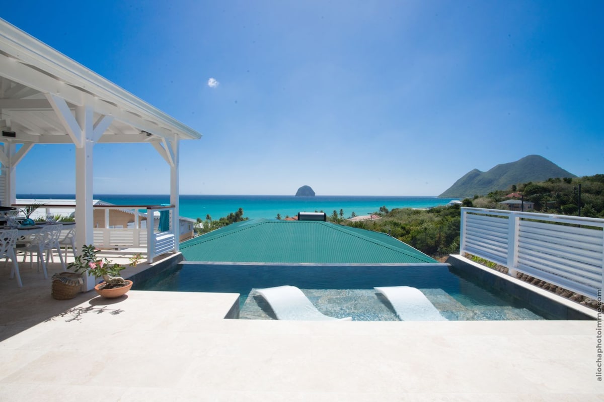 Uppdaterad, modern 3 AC sovrum, 2 badrum med privat pool och utsikt över Karibiska havet. 5 minuters bilresa till stranden, centrala Diamant med butiker, restauranger och marknader. 20 minuters bilresa från Fort de France flygplats. Villan är fullt utrustad med en tvättmaskin, diskmaskin, strykjärn, kaffemaskin, brödrost, mixer, rismaskin, bbq, 2 TV-apparater, Apple TV, mikrovågsugn, ugn, kylskåp etc. Värdar är infödda på Martinique och kan ge rekommendationer för sevärdheter på öar. Perfekt för familjer och par.