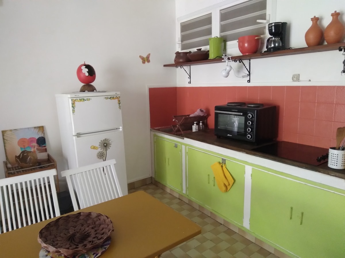 Kliv in i ett ljust boende och njut av den fantastiska utsikten över bukten i Fort-de-France! Denna lägenhet ligger 5 minuter från öns huvudväg och kommer att vara din idealiska bas för en arbets- eller fritidsvistelse eller en kombination av båda. Det dedikerade skrivbordet och höghastighetsinternet är utformat med distansarbete i åtanke och gör det möjligt för dig att arbeta effektivt. För en vilsam sömn kommer det mysiga sovrummet med luftkonditionering att välkomna dig natt... eller dag.