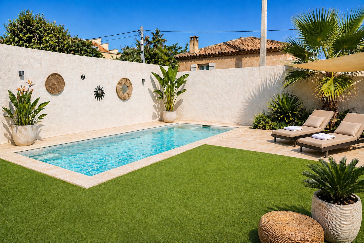N°13211009294HT Charmig luftkonditionerad studio utrustad med fiberoptik med liten pool och 2-sitsig massage SPA Den består av ett kök och matplats, en dubbelsäng och ett badrum, men också en trädgård, pizzaugn, grill, fritös, tvättservice, strykjärn och strykbräda. 500 m från köpcentret, 3 km från Pagnol kullarna, nära motorvägen 1 min: Cassis (15 min), Marseille centrum (15 min). Prado Beach (8 km) och våra vackra Calanques, buss i närheten