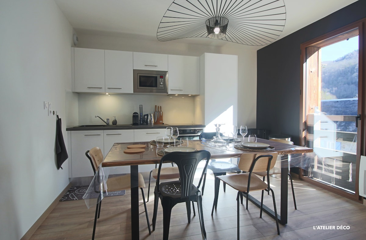 ✨ Öppna dörrarna till en ny stuga i Loudenvielle ✨ Bo i en modern chalet i bergsstil, perfekt beläget bara 650 meter från Skyvall, direkt ansluten till Peyragudes resort. Den är utformad för en lyckad cocooning-semester och erbjuder ädla material, en varm atmosfär, en fri utsikt över topparna och en täckt terrass som inbjuder dig att koppla av. En ny stuga där modernitet och bergsanda möts, för en uppfriskande paus under alla årstider.