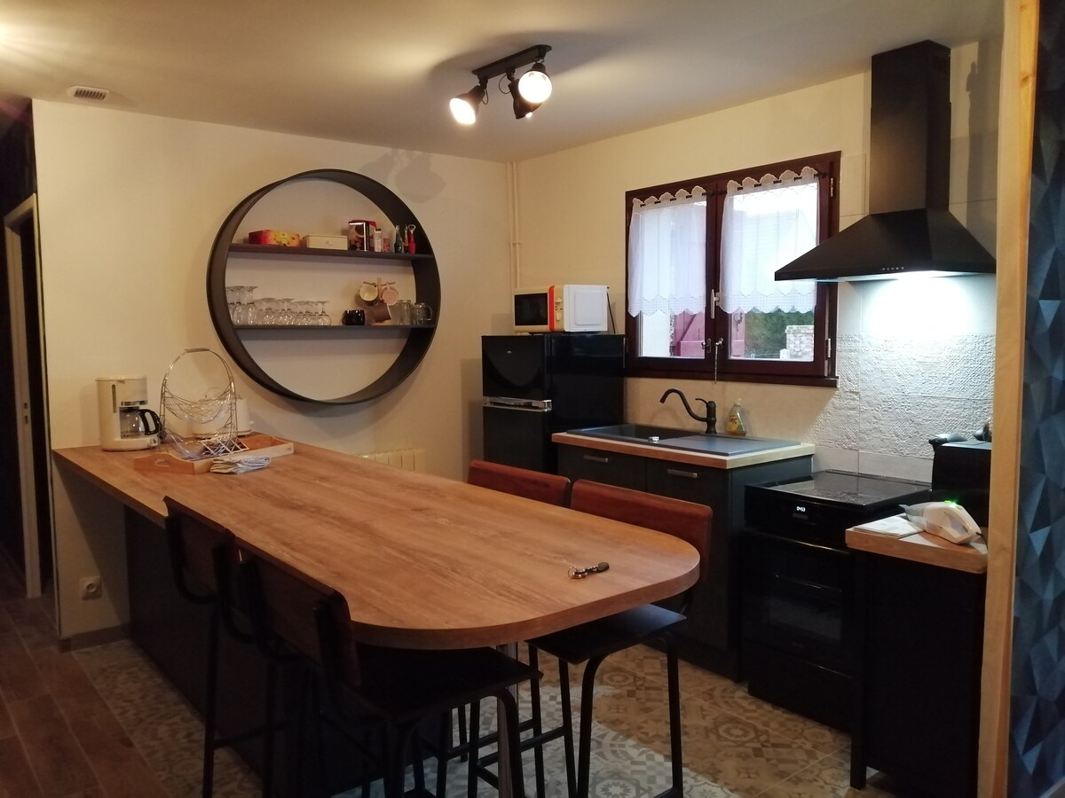 Beläget i centrum av den vackra byn Vaudreuil, i ett lugnt, slutet område med en grön trädgård, kan vårt "lilla hus" rymma en till två personer i full självständighet. Nära golfbanan i Vaudreuil, motorvägen A13 och Pharmaparc, Pharmalog, Janssen och Sanofi Pasteur, är vi också 1 timme och 15 minuter från Paris med tåg eller bil via motorvägen. Det är en utgångspunkt för att besöka Seine-slingorna, Giverny eller upptäcka klipporna för klättring i Connelles.