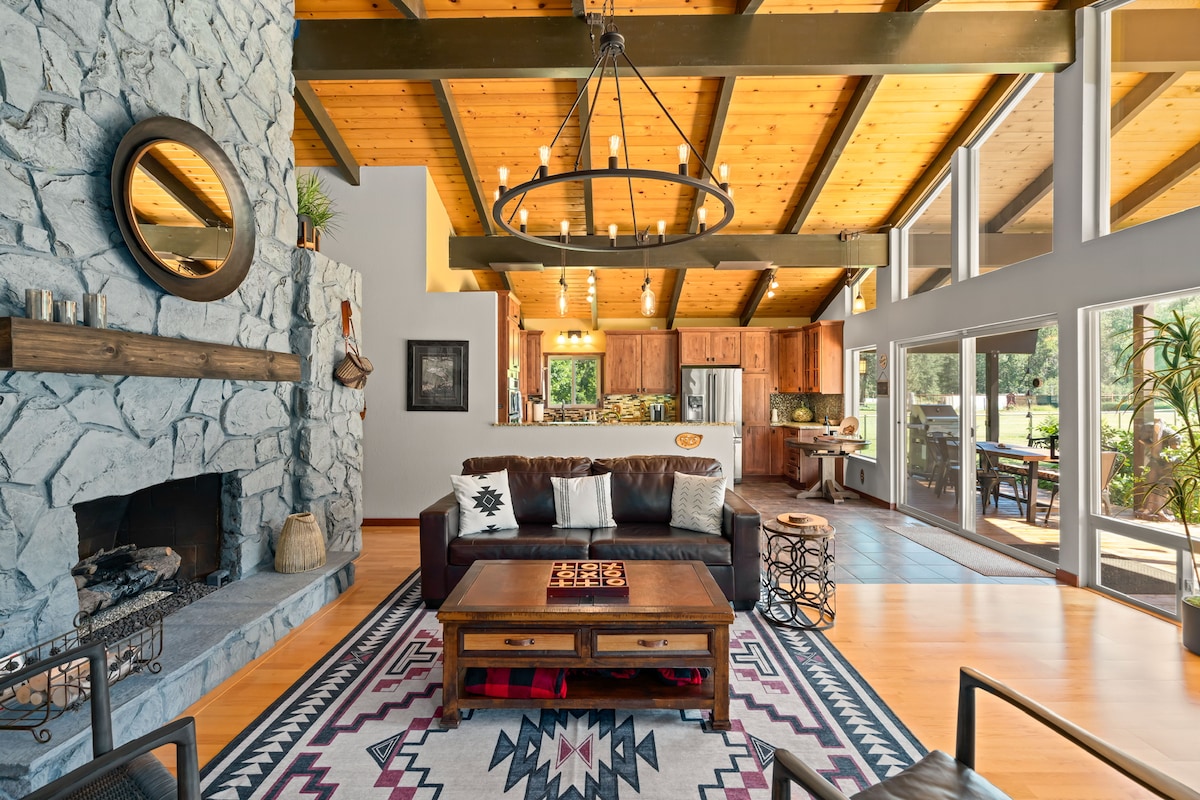 Redo att göra dina vänner avundsjuka? Med en infällbar vägg för inomhus-/utomhusboende, en riktig vedeldad öppen spis, overklig utsikt över floden, detta moderna klipphängande hem ovanför Wenatchee-floden och i hjärtat av Leavenworth (bara 2 minuters bilresa till staden!) denna stuga hjälper dig att varva ner och koppla av! Värmelamporna på däcket under vintern eller a/c inomhus under sommaren, du är säker på att njuta av din vistelse på The Overlook **SNÖRÅDGIVNING** se till att din bil är AWD eller 4WD.