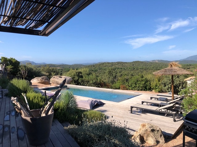 Bergerie **** i lokala stenar och kastanjeträ. I den korsikanska skogen, nära stränderna och Porto Vecchio, njuter du av en fantastisk utsikt över bergen från den privata uppvärmda poolen och tre terrasser på en tomt på 2 000 m2 planterad med träd Varje detalj har utformats för ögonens njutning och komfort, möbler gjorda av lokala hantverkare, stengolv, hög komfort sängkläder. Luftkonditioneringen och den uppvärmda poolen (2 maj till 5 oktober) gör att du kan njuta av huset under alla årstider