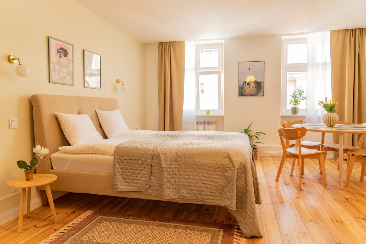 Vacker studio i hjärtat av staden. Det gamla torget ligger 3 minuters promenad bort, du får inte missa det:) Fullt utrustat, gratis WIFI, pentry, kylskåp, kaffebryggare, brödrost, mikro, keramikhäll, tvättmaskin, rymlig garderob, strykjärn, handdukar . Känn dig fri att Jag utfärdar fakturor