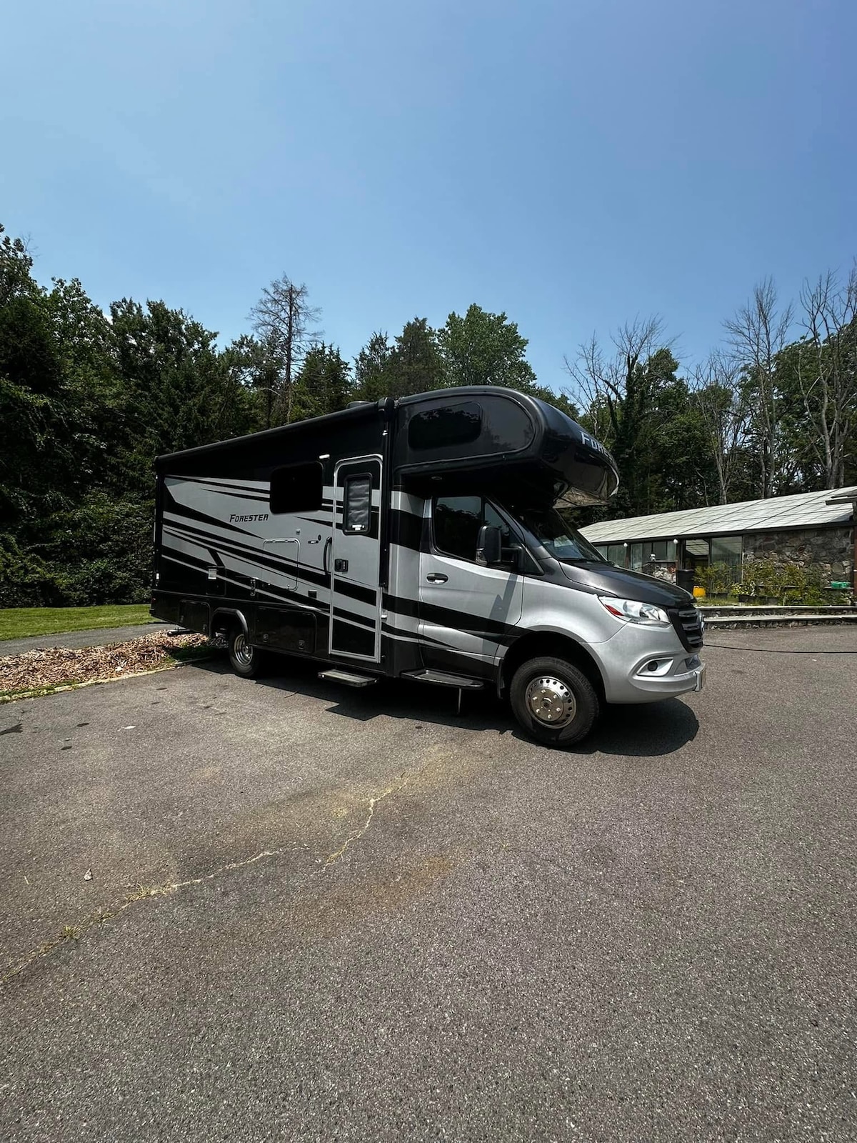 Njut av en mysig vistelse i denna eleganta 25-ft Mercedes RV nära Shawnee, Poconos, och bara 10 minuter från Delaware Water Gap. Sovplats för 6 med en queen Murphy-säng, teaterstolar och en unik bubbelhörna. Funktioner inkluderar ett utdragbart vardagsrum, fullt badrum, fyllt kök, 2 inomhus-TV, utomhus-TV under en 15-fots markis och ett hemmabiosystem. Djurvänligt med elektroniska lås och pool, bubbelpool mot en avgift. (stängt tills vidare) Njut av all natur som vattengapet har! Med värden Corey