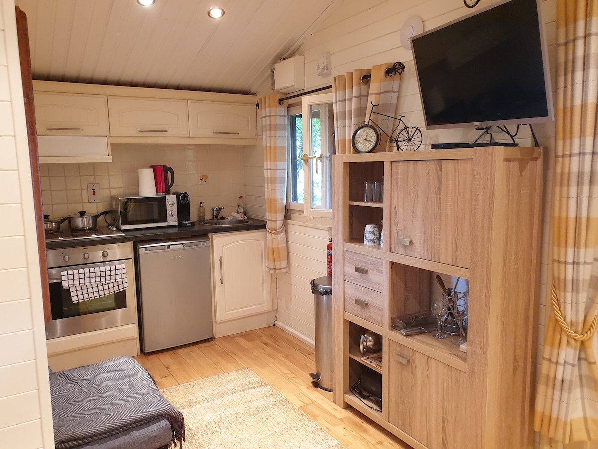 Beautiful bright comfortable & cosy chalet overlooking gorgeous garden beside my house with private entrance situated in a very quiet neighbourhood so please be mindful of this, 10min walk from Celbridge village & 2 mins from Castletown House. It has 1 bedroom w single/double bed & a mezzanine which has space to sleep 2 people. Its 30 mins drive from Dublin city Ctr and 20 min from the airport with direct access to the West of Ireland. The C6 bus from the village you can take into Dublin City.