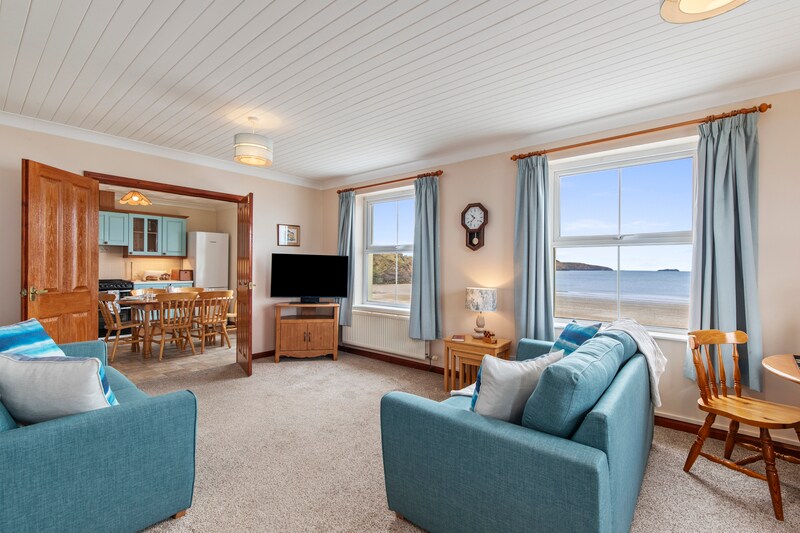 'Seaward' är en lycklig, rymlig, söderläge tre-säng rum vindsbungalow. Det ligger i ett stort, lugnt, privat läge. Huset vetter rakt söderut och har havsutsikt från de flesta rum. Utanför finns en enorm, söderläge, perfekt för barn och husdjur att leka och massor av parkeringsplats. 'Seaward' ligger mindre än fem minuters gångavstånd från både stränder och de flesta bekvämligheter i byn, inklusive restauranger och butiker. Så kom för att stanna, parkera bilen, lägg undan dina nycklar och koppla av!