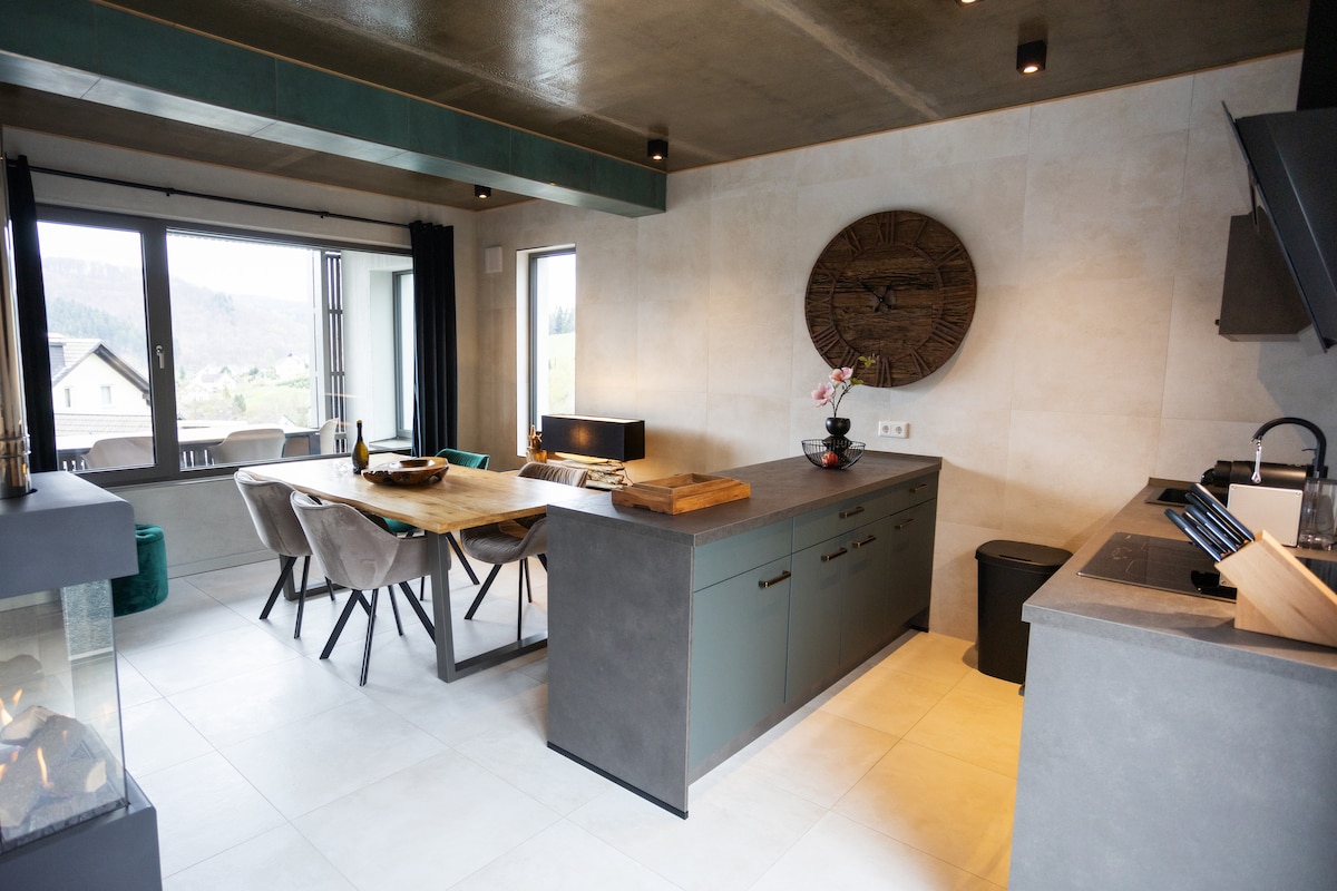 Välkommen till Immo-Vision & this wellness dream home at the Aggertalsperre! Denna takvåning kombinerar lyx, komfort och natur: • Panoramautsikt • Hälsooas med bastu och badkar • Moderna bekvämligheter • Terrass med jacuzzi, grill och sittplatser • Smart-tv • 2 sovrum med mysiga 1,80 dubbelsängar • Bäddsoffa med stor sovplats • Fullt utrustat kök med helautomatiska kaffemaskiner • Direkt tillgång till vandringsleder och naturupplevelser • Hiss till takvåning