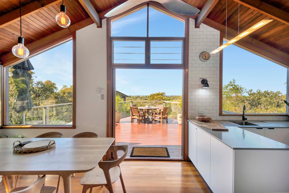 Beläget i det mest eftertraktade läget inom Oasis Resort, fångar Kingfisher Treetop House hisnande utsikt som sträcker sig från den ikoniska Byron Bay Lighthouse, till den slående kusten av Broken Head. Denna karaktärsfyllda tillflyktsort är inte ultramodern - men dess värme, luftiga layout och naturliga omgivningar erbjuder en uppfriskande och jordande tillflyktsort. Blanda förhöjd avskildhet i trädtoppen med bekvämligheten av att vara bara några minuter från Byron Bays stränder, kaféer och pulserande centrum,