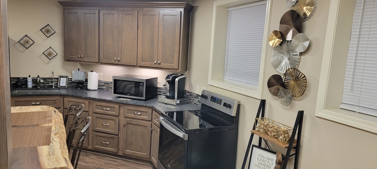 Njut av komfort och bekvämlighet på Alpine Mill, en modern lägenhet nära Morgantons centrum. Med TV i både vardagsrum och sovrum, ett fyllt kök, en elektrisk öppen spis och det snabbaste WiFi på marknaden är det perfekt för arbete eller vila. Promenera till restauranger, kaffe och butiker, eller nå sjukhuset på några minuter. Hickory och Marion ligger bara 30 minuter bort, med Lake James och South Mountains i närheten för avkoppling. Tillgång till gym på plats på andra våningen.