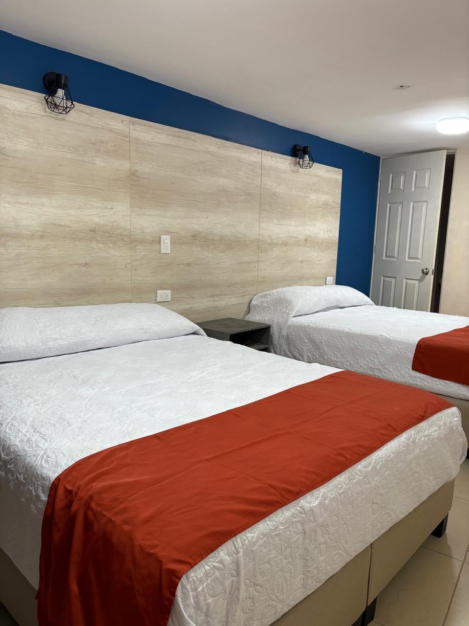 Habitación privada con 2 camas matrimoniales, llave de acceso inteligente, aire acondicionado, Tv de pantalla plana por cable, WiFi gratis, teléfono, baño privado con ducha y amenidades gratis.