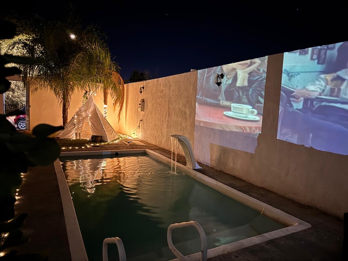 Koppla av i denna lugna och unika stuga belägen norr om Torreon, nära UAE-stadion. Bara 10 minuter från staden kommer du att känna dig i lugnet i detta utrymme med pool, grill och en stor trädgård där du kan koppla av. Bekvämligheter pool, palapa, grill och delade trädgårdar. 10 minuter från Galerias Laguna 5 min från Play Padel Club 5 minuter från Padel ONE CLUB precis framför Club Club de padel.