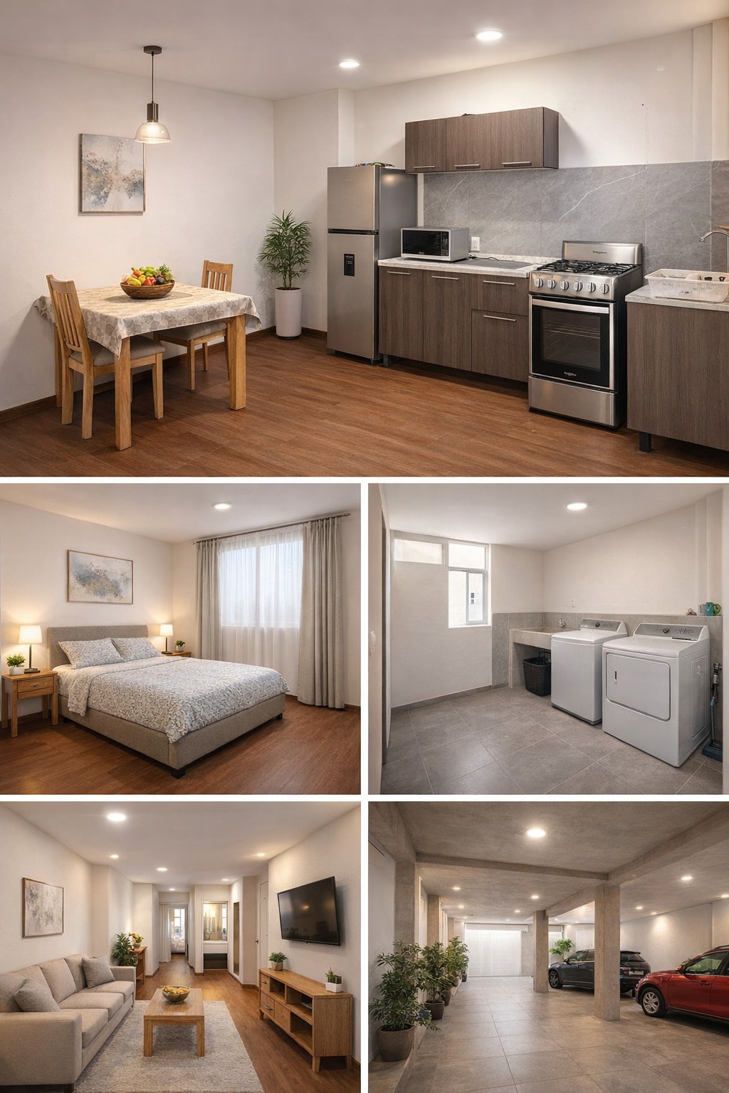 Vid ankomsten väntar ett rymligt, ljust vardagsrum med TV och internetuppkoppling och plattformar som Netflix och ViX väntar på dig. Boendet har två sovrum och ett delat badrum för ditt bruk. Varje rum har en dubbelsäng, perfekt för en vilsam vila. Om du gillar att laga mat hittar du ett pentry utrustat med allt du behöver för att laga din egen mat. Och för din sinnesro erbjuder lägenheten parkering inne i fastigheten, 100% säker.