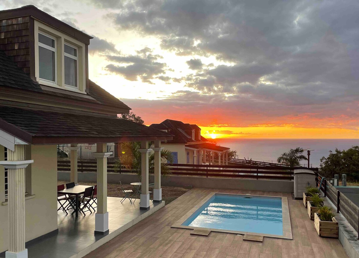 VILLAN SEAVIEW, 150 m2, 1 master-svit, 2 sovrum med pool och stor terrass med utsikt över havet. Njut av solnedgångar och valar under säsongen. 2 minuters promenad från stranden och 1 minut från stadens centrum, njut av en villa med högt i tak. Tillgång till alla havsutflykter, dykning, surfing, cykeluthyrning, motorcykel, bil samt många butiker, restauranger och barer i badorten Saint Gilles les Bains. Vi ses snart,