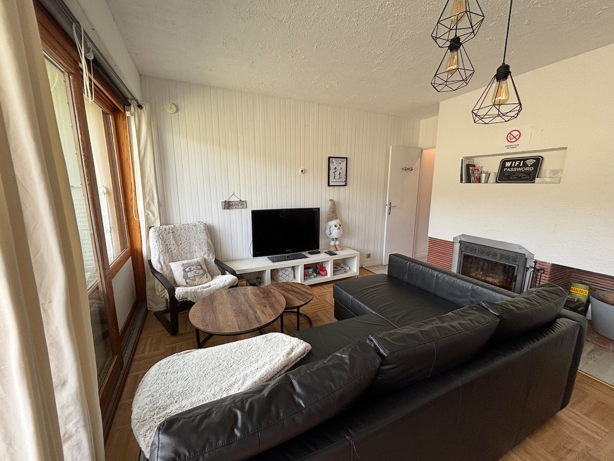 Välkommen till Jouv' ⛷️🏔️ Vårt varma boende, nyrenoverat, väntar dig, sommar som vinter, för att njuta av Jura-bergen. ⚠️ : Lägenhet belägen på fjärde våningen, utan hiss. Beläget vid foten av skidbackarna " LES JOUVENCEAUX", kommer du att njuta av en genomgående lägenhet på 49 m2, med ett sovrum och en bäddsoffa, mycket bekväm och modulär (160x200 eller 2 sängar på 80x200). 🚙 : Garage Vi bor på detta ställe varannan vecka, så det är mycket välutrustat. 🫕