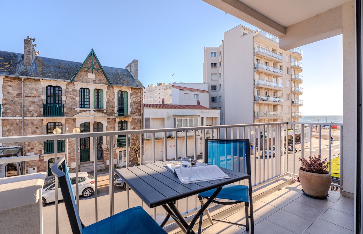 "Lägenheten ligger i hjärtat av Sables d'Olonne och är helt renoverad, i en lugn och säker byggnad. Perfekt läge för att njuta av den stora stranden som ligger vid foten av byggnaden, liksom stadens gågator, lokala marknader, fyllningen och dess barer och restauranger, glassbarer, cykeluthyrning, surfing, ... allt till fots! Tågstationen ligger 10 minuters promenad bort. Detta boende har 4 bäddar (1 dubbelsäng och en bäddsoffa), ett utrustat kök, ett badrum och en toalett.