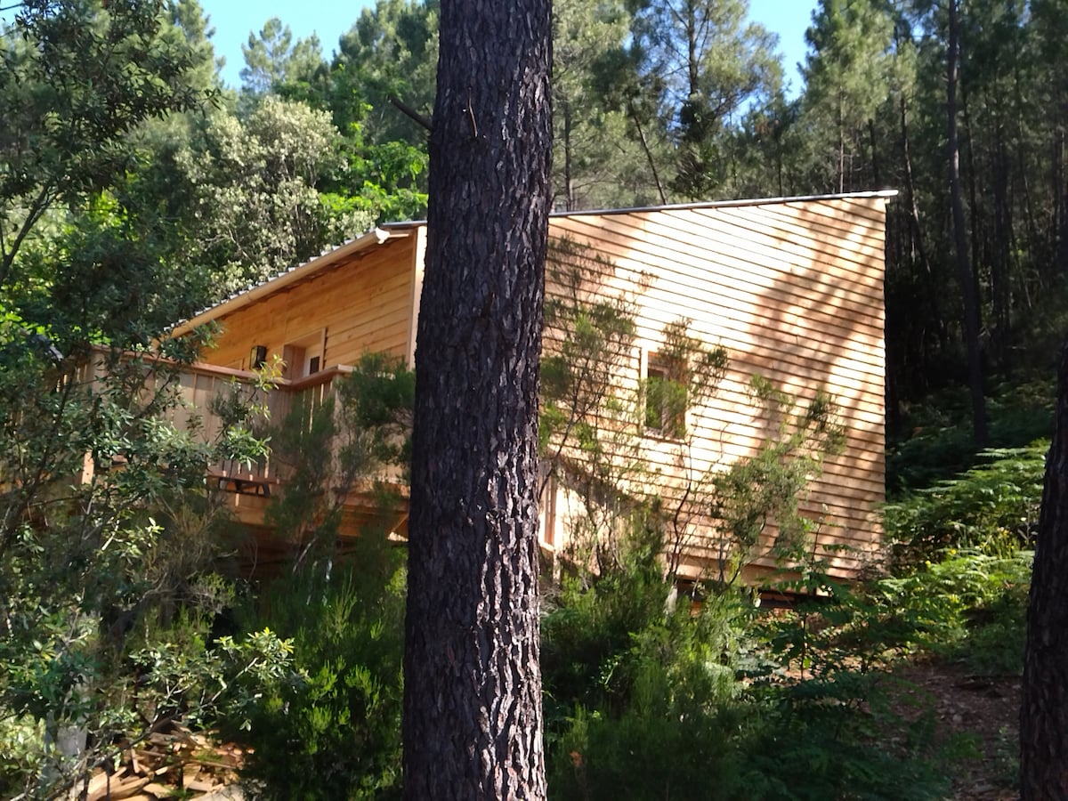 Isabelle välkomnar dig till sin bekväma bioklimatiska gîte: luftkonditionering, wifi, träterrass, liten trädgård och parkering. Sängarna kommer att bäddas vid din ankomst. Stugan ligger mellan två byar i utkanten av en liten sjö, tio minuters promenad från Chassezac-floden och Bois de Païolive, utgångspunkten för många vandringar, mountainbike-leder, kanot nerför Chassezac raviner möjliga. , många klippor utrustade för sportklättring inom en radie av en kilometer.