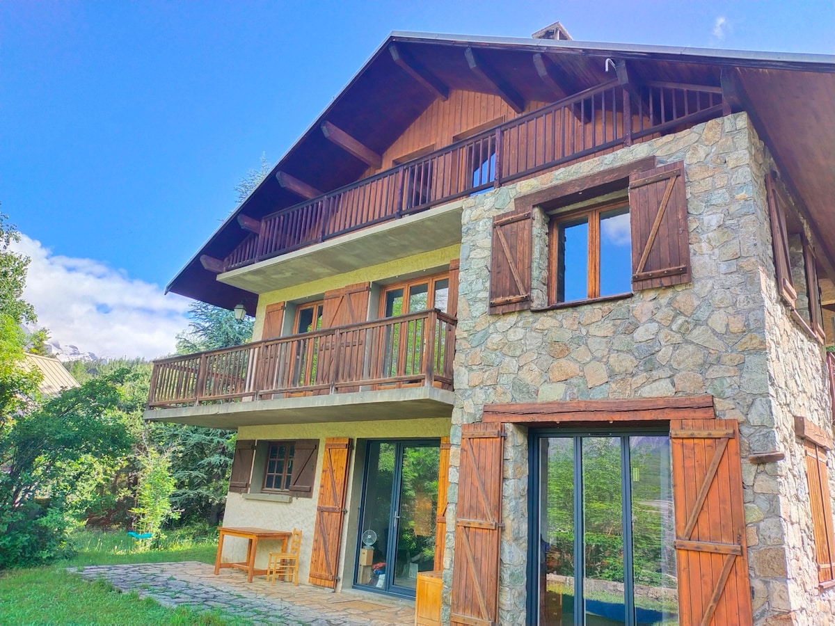 Vår alpstuga ligger lugnt i en privat trädgård. Dess terrass på 30 m2 gör det möjligt för dig att njuta av en panoramautsikt. Gratis parkering. Vi har särskilt hand om utrustningen och inredningen för en kokongatmosfär. 5 minuters promenad från centrala Guillestre hittar du: alla butiker , biograf, restauranger, stormarknad. Vid grindarna till Queyras, Vars, Risoul och den frisiska dess geografiska läge ger dig tillgång till en obegränsad lekplats sommar och vinter.