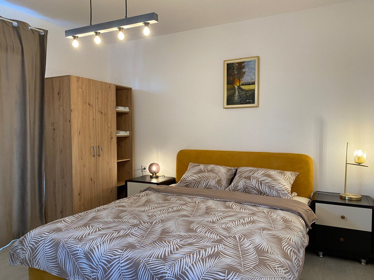 Modern utrustad lägenhet i stadens centrum, nära Nišava-floden, fästningen, liksom 2 parker, restauranger och liknande bekvämligheter. Den har egen parkering, och efter överenskommelse kan en extra parkeringsplats tillhandahållas mot en minimal avgift. Lägenheten har en tvättmaskin med torktumlare, kaffebryggare, brödrost, mikrovågsugn och ett fullt utrustat kök. Upplev den perfekta blandningen av urban bekvämlighet och hemtrevlig komfort under din vistelse i vår genomtänkt inredda lägenhet.