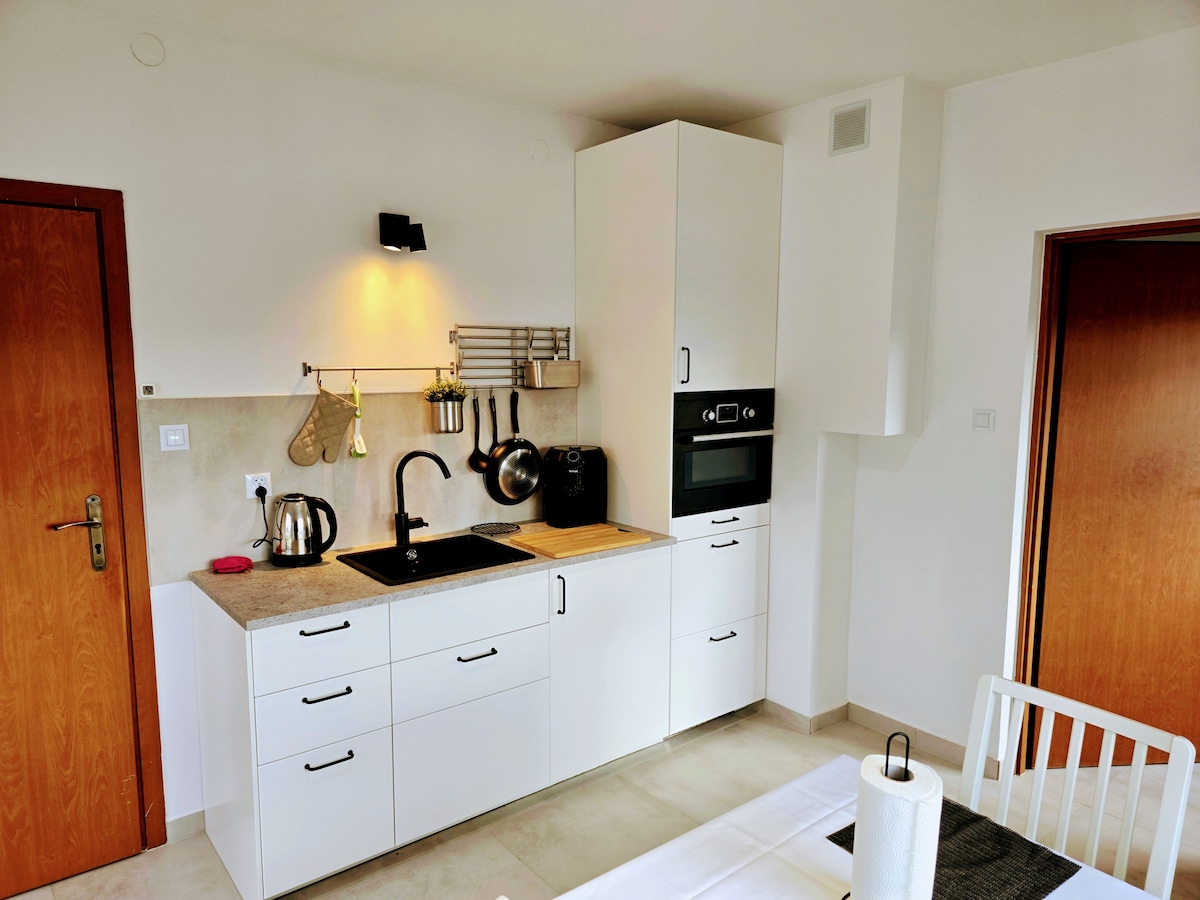 Perfekt för 1–4 personer, särskilt hantverkare eller resenärer som passerar genom som behöver ett säkert ställe att bo på. Lägenheten ligger i lugna, natursköna omgivningar på vår egen inhägnade fastighet. Hela området är säkrat med en låst grind, videoövervakning och övervakade röklarm. Det finns gott om parkeringsplats, inklusive för stora skåpbilar och lastbilar. Elfordonsladdning finns tillgänglig på plats för 1,90 zł/kWh, vilket enkelt kan betalas vid avresa.