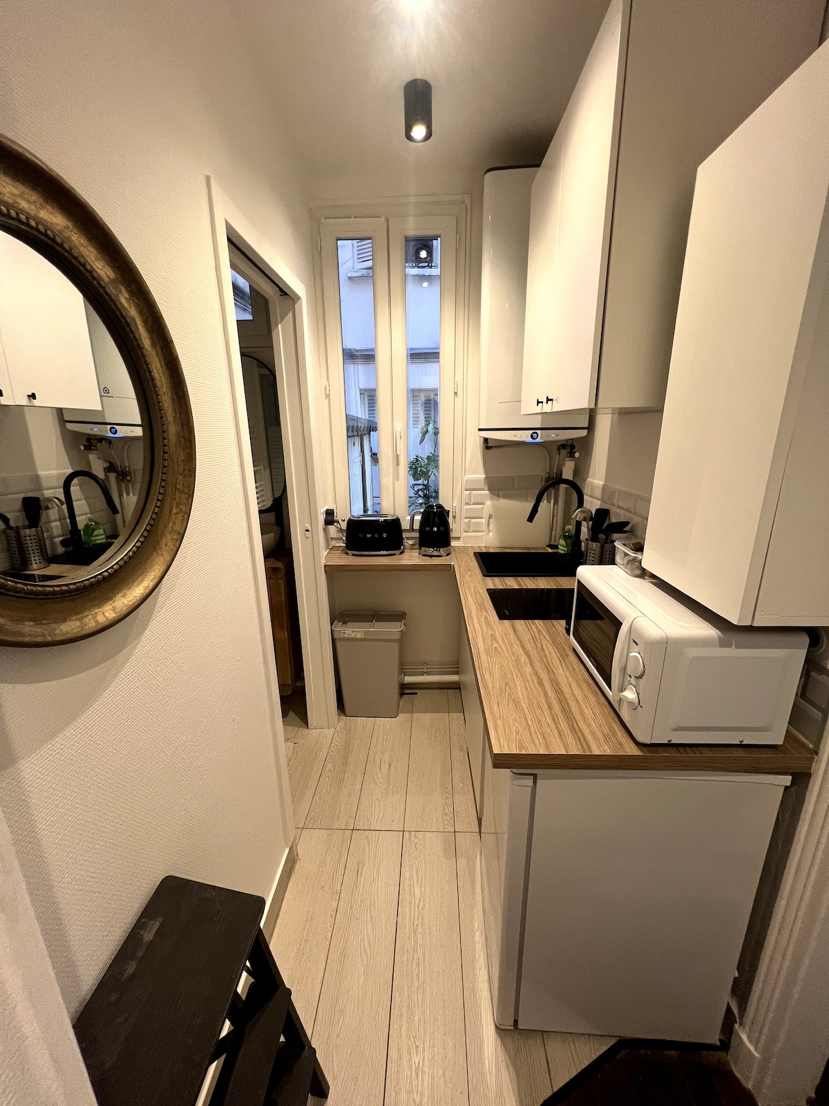 Bo i vår charmiga studio i Levallois-Perret, som ligger på översta våningen i en byggnad nära butiker, tåg och tunnelbana. Den eleganta inredningen inkluderar ett fullt utrustat kök och ett mysigt vardagsrum. Njut av en vilsam natt i dubbelsängen och njut av ditt morgonkaffe på den fridfulla balkongen. Paris hjärta har aldrig varit så nära!