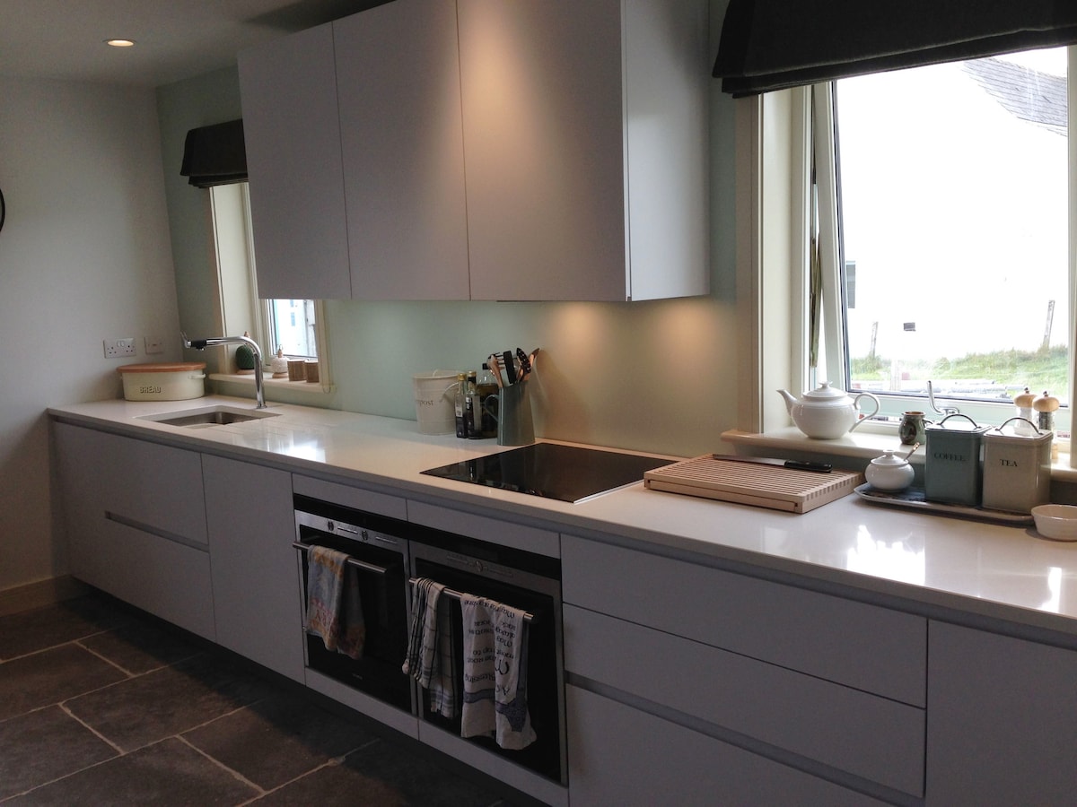 Taigh Malky är en av två fristående sviter i fastigheten och består av ett sovrum, kök/vardagsrum med ett bildfönster med utsikt över en fantastisk utsikt över Loch Roag med Cuillin bergskedjan bakom. Det gör det möjligt för dig att fortsätta att njuta av skönheten i Skye, efter en dag av att utforska ön. Systersviten kan bokas via: airbnb.com/h/taigh-chalum Observera att sviterna inte är lämpliga för spädbarn eller barn.