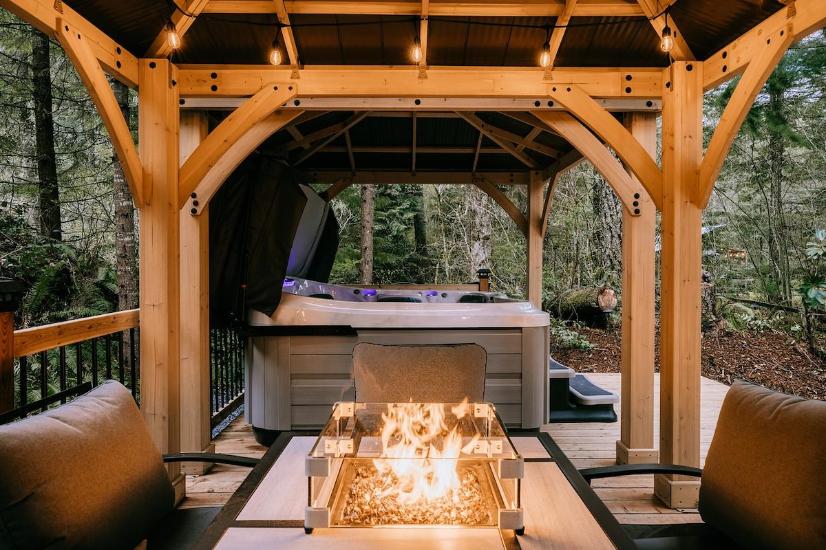 Skogshytt vid Mt. Rainier, bubbelpool, bastu, DNRtrail