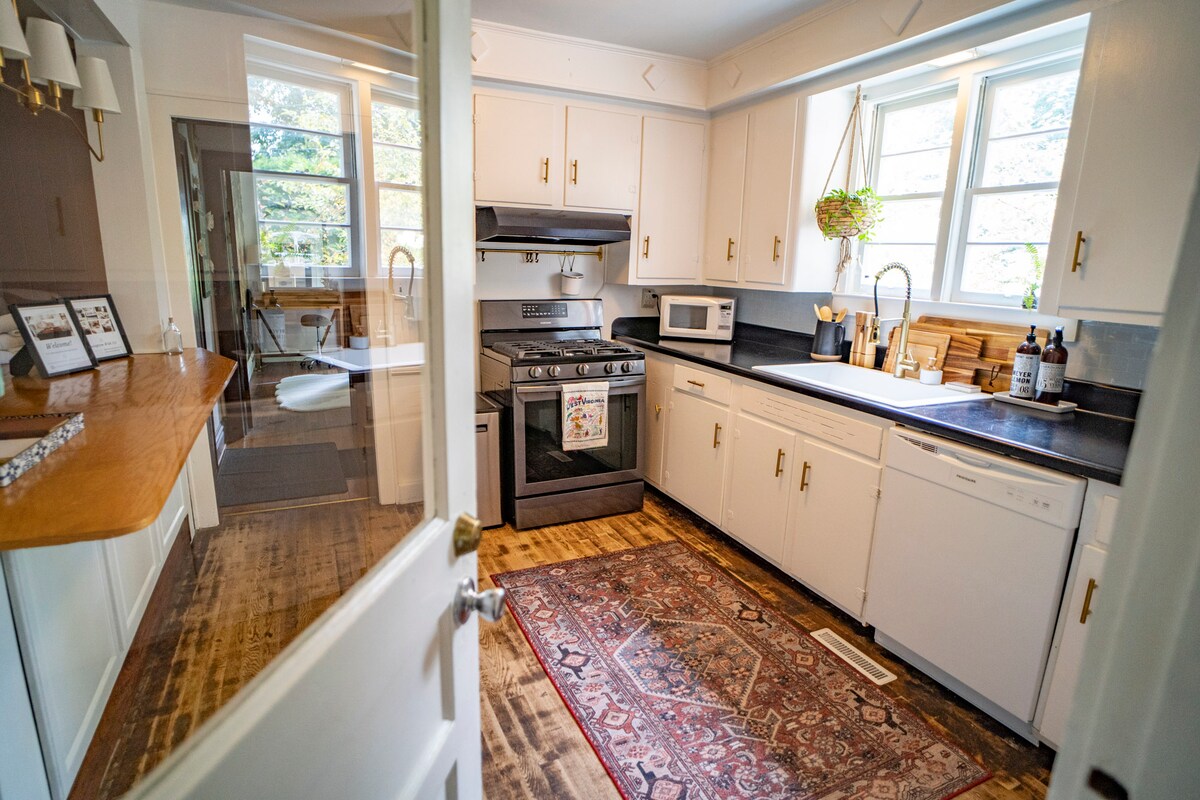 Corner Cottage ligger gömt i ett avskilt hörn i CENTRUM av Lewisburg och väntar på ditt äventyr. WVSOM ligger mindre än en mile bort och Greenbrier River Trail ligger 5 minuters bilresa bort. Vi erbjuder lokalt ekologiskt Mountain Table special 'Burg Blend kaffe för din morgon java fix! Originalfotografi och konst kommer att välkomna dig. Food & Friends, Stardust Cafe och Humble Tomato är en kort, säker promenad. Denna stuga är under 900 kvadratfot med öppen planlösning. Precis bakom Washington St, läget är perfekt.
