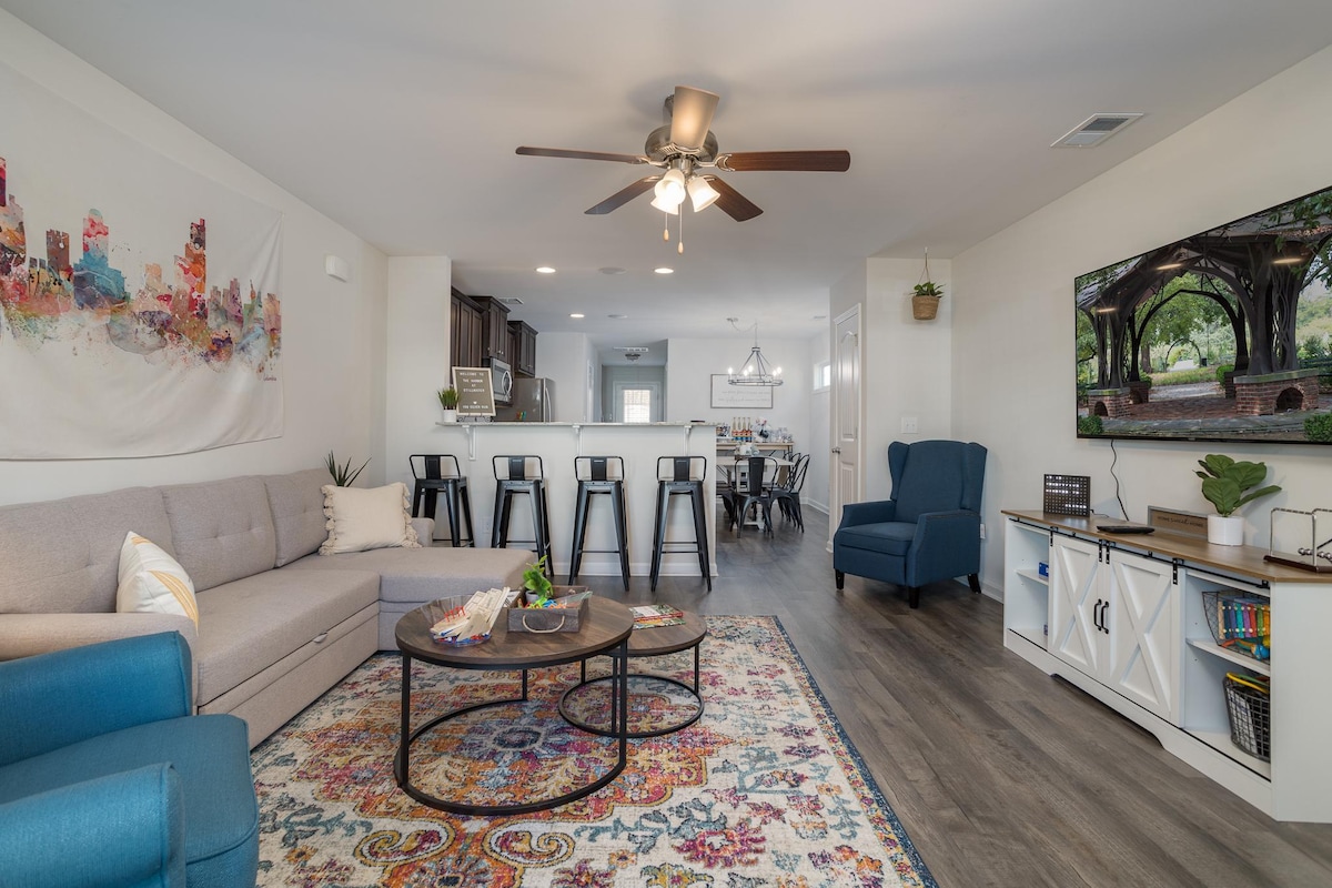 Detta Downtown Townhome är ett nytt byggnadshus med 3 sovrum med kingsize-sängar och 3 fulla badrum. ★Femstjärnigt städteam utbildat i desinfektion och sanitet En ★kort bilresa till Ft. Jackson, USC Campus, Riverbanks djurpark Dubbelsäng med★ kingsize-säng i varje sovrum ★Smart-TV i vardagsrummet och varje sovrum ★SNABBT WIFI och skrivbordsområde för AFFÄRSRESENÄRER ★Fullt utrustat och uppdaterat kök Parkering på★ uppfart