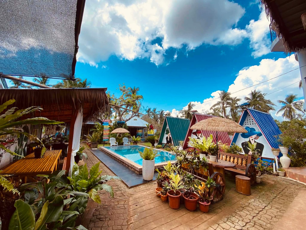 Ta det lugnt på denna unika och lugna tillflyktsort. Bara tjugo steg till fots på stranden. Denna bungalow (Payog) är en verkligt inhemsk struktur byggd av en lokal hantverkare och möblerad i lokalbyggda bambumöbler. Sitt upp i sängen och titta på soluppgången, ta kaffe i frukostbaren eller vila dig på bamboldäcket. Ovärderlig utsikt och havsbris väntar.