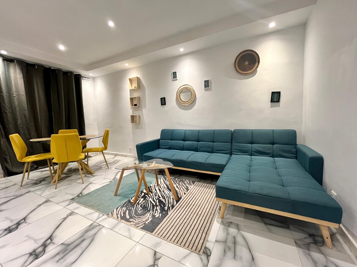 Glöm dina bekymmer i denna lyxiga lägenhet på 4:e våningen med hiss i ett säkert boende. Dess fantastiska inredning kommer att få dig att uppskatta din vistelse i total komfort. Lägenheten är helt luftkonditionerad, utrustad med två stora vardagsrum, en 4K Smart TV, fiberoptik, Netflix, Canal, en 24-timmars vakttjänst. En hyrbil kan ställas till ditt förfogande för dina flygplatstransporter men också för dina resor.