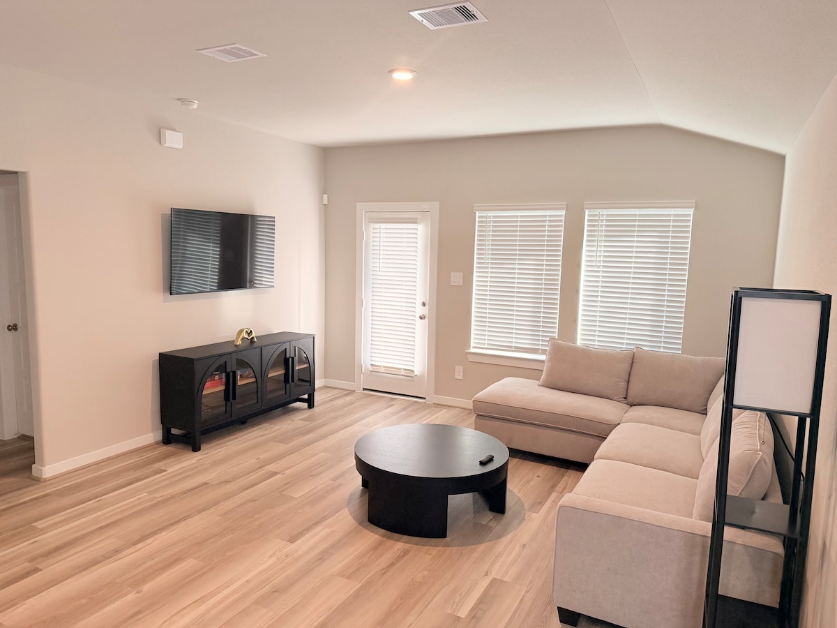 Vänligen reflektera rätt antal övernattande gäster vid bokning. Gästlägenheten är åtskild från huvudbostaden med ett stort garage. Parkeringen ligger bredvid lägenhetens ingång. Läget är 5 minuter från Dayton, 35 minuter till Houston, 10 minuter till Mont Belvieu, 15 minuter till Baytown. Det finns en utomhus sittgrupp under det vackra ek-trädet. Den lugna inställningen av träd blandat med ljudet av naturen och bekvämligheten i lägenheten kommer att göra dig till ett fan av Out In The Country.