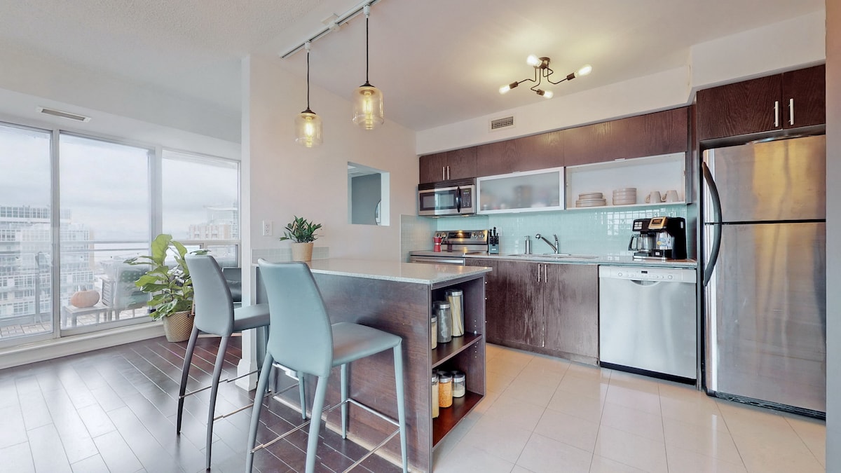 Upplev centrala Toronto i en elegant lägenhet! Börja dagen med att njuta av kaffe på balkongen. Gångavstånd till BMO Field (arenan i Toronto) – perfekt för konserter, sportevenemang och FIFA-evenemang. Gå till CN Tower, Rogers Centre, Ripley's Aquarium, Exhibition Place, restauranger och vattnet. Fullt utrustat kök, 2 skrivbord med snabbt wifi. Byggnaden har pool, bubbelpool, bastu, gym, grill på taket, gratis parkering och självincheckning. Rabatter för 7 nätter eller fler och icke-återbetalningsbara bokningar. Boka din oförglömliga vistelse i Toronto idag!