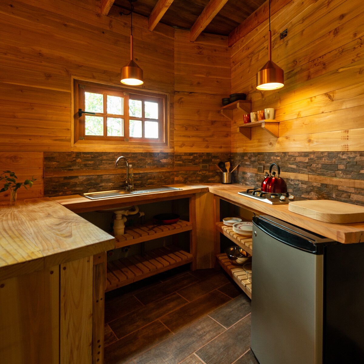 Koppla av på denna unika och lugna tillflyktsort. Fördjupad i den inhemska skogen, som i en berättelse, levande natur som en enhet kan du se stjärnorna och månen på natten från din säng... om vädret tillåter. Njut av regnet och ibland snö i all sin prakt! Den har privat tinaja! Tinaja har ett separat värde (det ingår inte i värdet av stugan - kostar 50 000 dollar per användning, 2 användningar för 90 000)