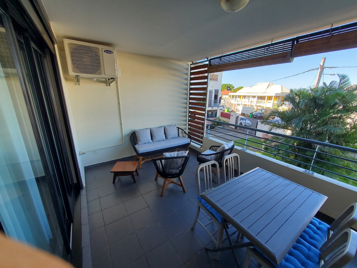 Bienvenue a zot ! ☀️ Venez passer votre plus beau séjour au sein de cet appartement dans une résidence privé et sécurisé. Situé en plein cœur de Saint-Pierre, vous serez proche de toutes commodités et activités : le marché forain 🧺 est situé à 15 minutes, et la plage 🏖️ se trouve à 10 minutes à pied. Ce logement est le point de départ idéal pour découvrir le sud sauvage : le volcan 🌋 et la cascade Grand Galet 🏞️ sont à 1 heure de route, et le cirque de Cilaos ⛰️ est à 1h30 en voiture.