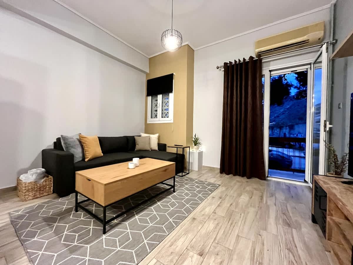 Vår lägenhet är NY, renoverad i juni 2025. Det finns ett sovrum med en superbekväm dubbelsäng och ett nytt kök där du kan hitta allt du vill laga din lunch/middag/frukost. Lägenheten är modern inredd och kunderna kan koppla av under sin semester. Det finns gratis parkering på vägen precis framför dörren till lägenheten. Bara 800 m (10 minuters promenad) från centrum av Naplio, 1 km (15 minuters promenad) från Sintagmatorget och 3 km från Palamidiborgen.