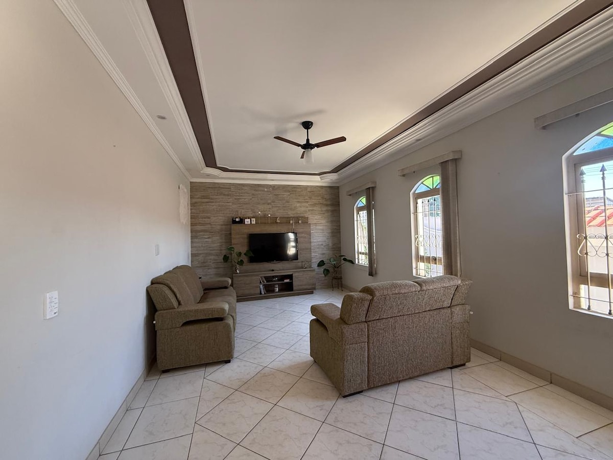 Hon heter Space! I Americana har din paus värme och ingen klämning! Vårt boende välkomnar dig med omsorg och komfort! Vi har ett garage med en elektronisk grind. Huset ligger i hjärtat av staden, med enkel tillgång till alla regioner. Jag önskar att du känner dig som hemma! **Observera** Garaget stöder inte långa fordon. Exempel: S10, Hilux, Frontier, Amarok, Toro, F250, HAM. Dessa fordon kommer att kunna parkera framför boendet. Tillgänglighet **POUNDS**