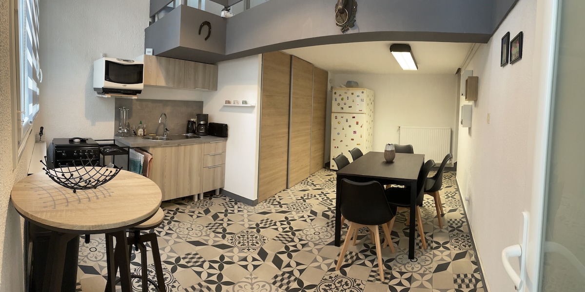 Rymligt och fridfullt utrymme. lugnt hus fullt utrustat för att rymma dig upp till 2 vuxna och 2 barn och ett barn. Fiber installerad. 1 separat sovrum queen bed (sängkläder tillhandahålls) 1 stort vardagsrum, utrustat kök med separat sovplats: 2 sängar på 90 1 badrum + tvättmaskin + handdukar tillhandahålls 2 terrasser leverans av nycklarna av ägaren på plats annars låst nyckelskåp Hundar tillåtna 15 EUR extra