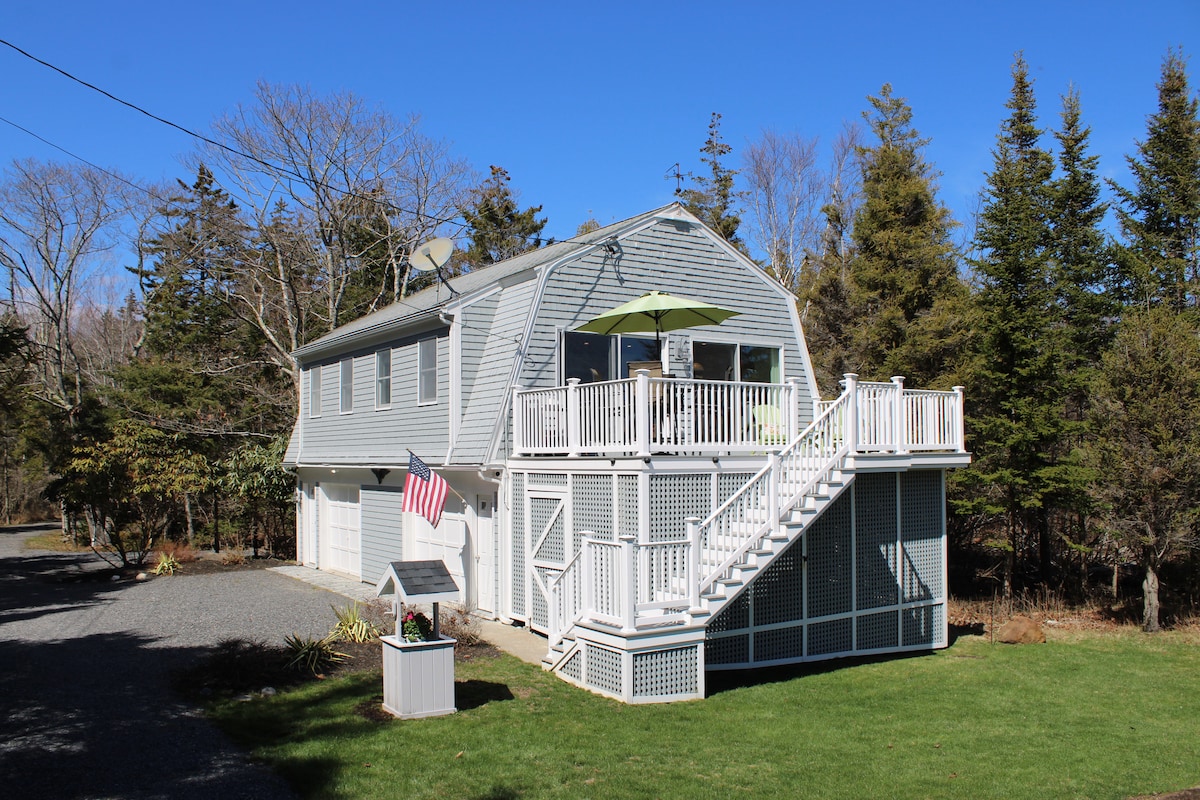 Koppla av i denna mysiga vindsvåning med ett ljusfyllt däck med utsikt över skogen, men bara fem minuter till centrala Damariscotta. Denna helt nya vindsvåning ovanför vår lada är mysig med allt du behöver för en perfekt semester. Du kan koppla av med ditt morgonkaffe ovanför träden. Den har en inomhustoalett, handfat och frukostbar och utomhusdusch. Vi är ett halvpensionerat par och älskar att dela vår 62 hektar stora fastighet med bäck och äng. Det finns ganska många trappor till loftet.