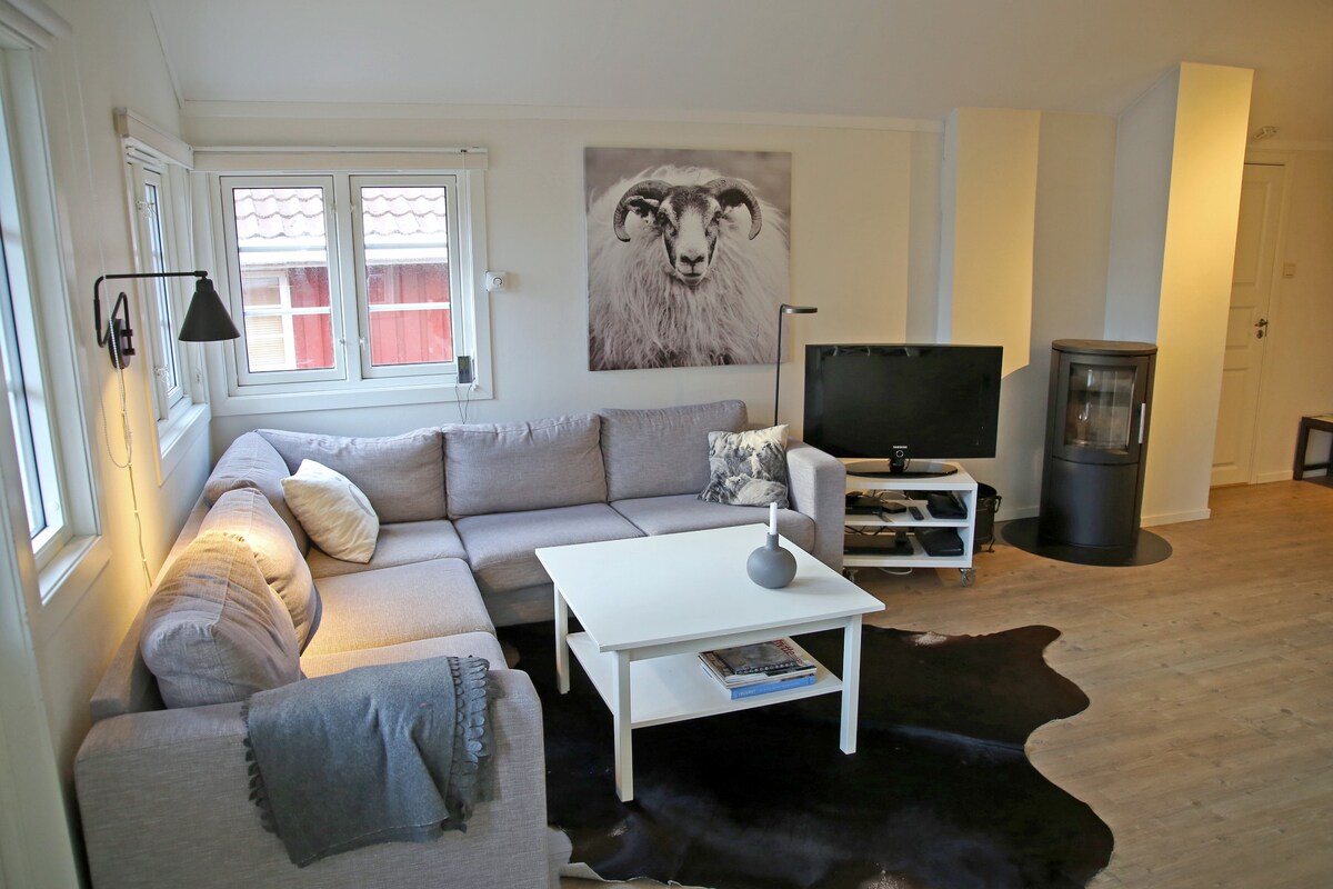 Välkommen till vårt idylliska hus, perfekt för den som vill ha naturskönhet och en riktig norsk upplevelse! Huset ligger precis vid vattnet, omgiven av berg och frodig natur. Här kan du njuta av ditt morgonkaffe med utsikt över fjorden. Direkt tillgång till havet – perfekt för bad, fiske eller en liten båttur. Laddare för elbil: 2,3 kW – typ 2-uttag (ta med egen kabel) Søgne 15 min. Kristiansand 24 min Kristiansand Dyrepark 35 min. Mandal 22 min 15 fots båt med 6 hk motor finns på sommaren.