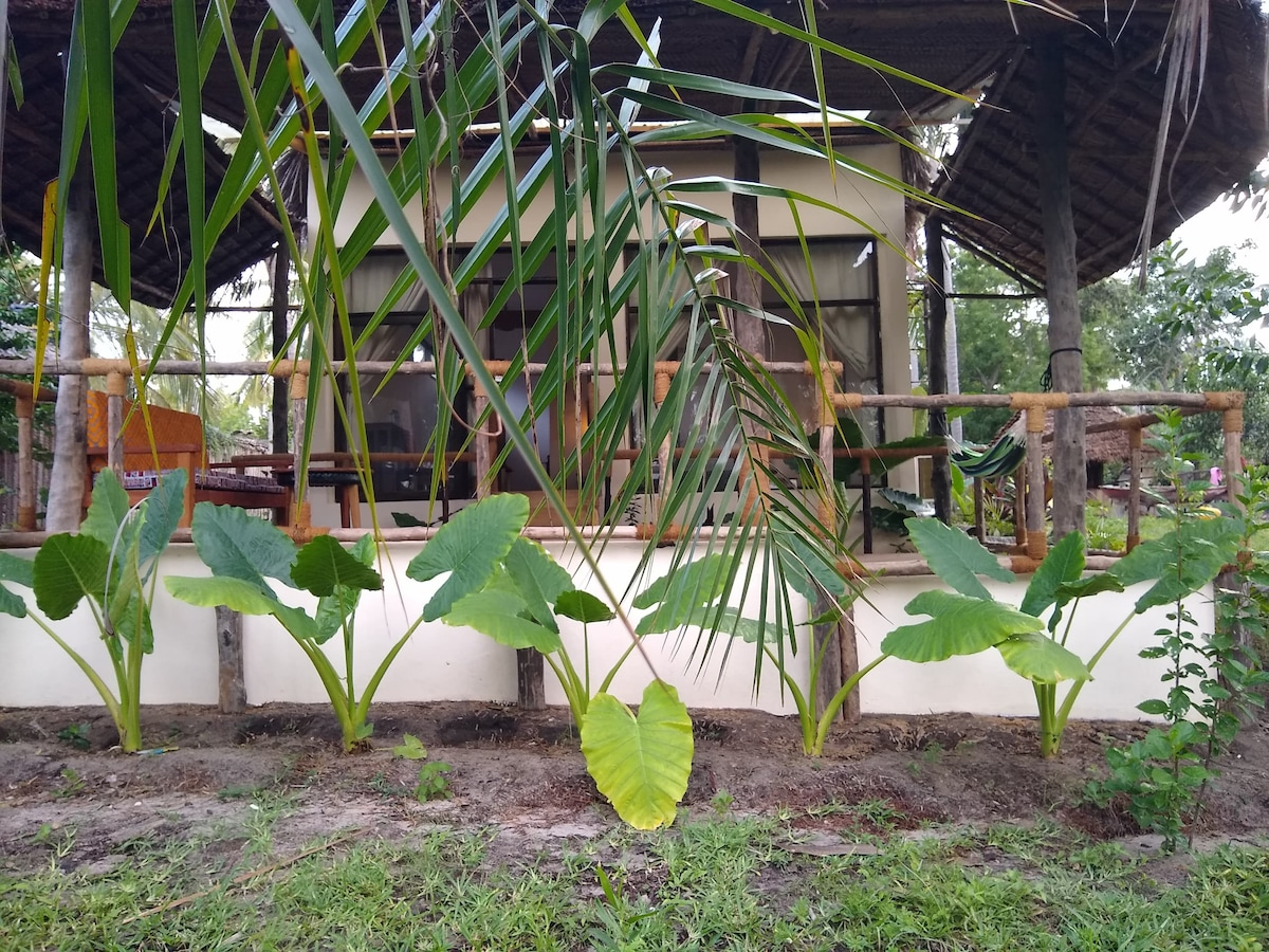 Nytt ställe att bo påBungalow med tropisk trädgård. 10 minuters promenad till stranden