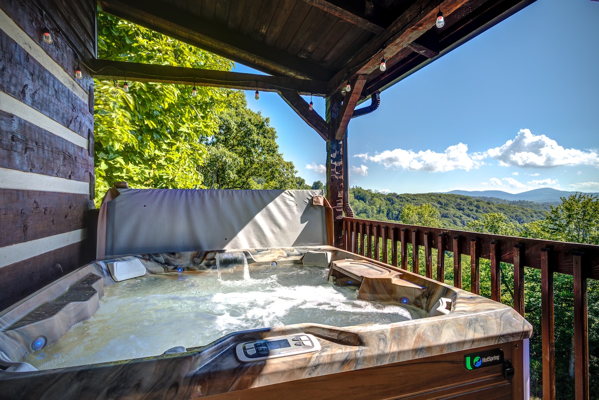 Mountain Cabin Oasis med bubbelpool och eldstad